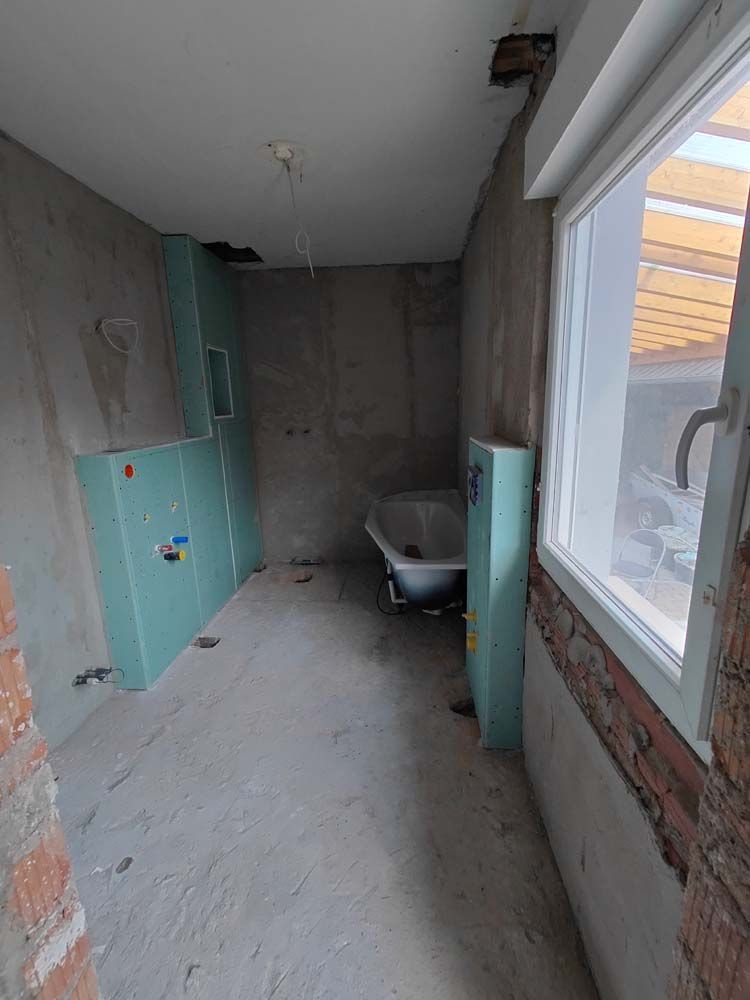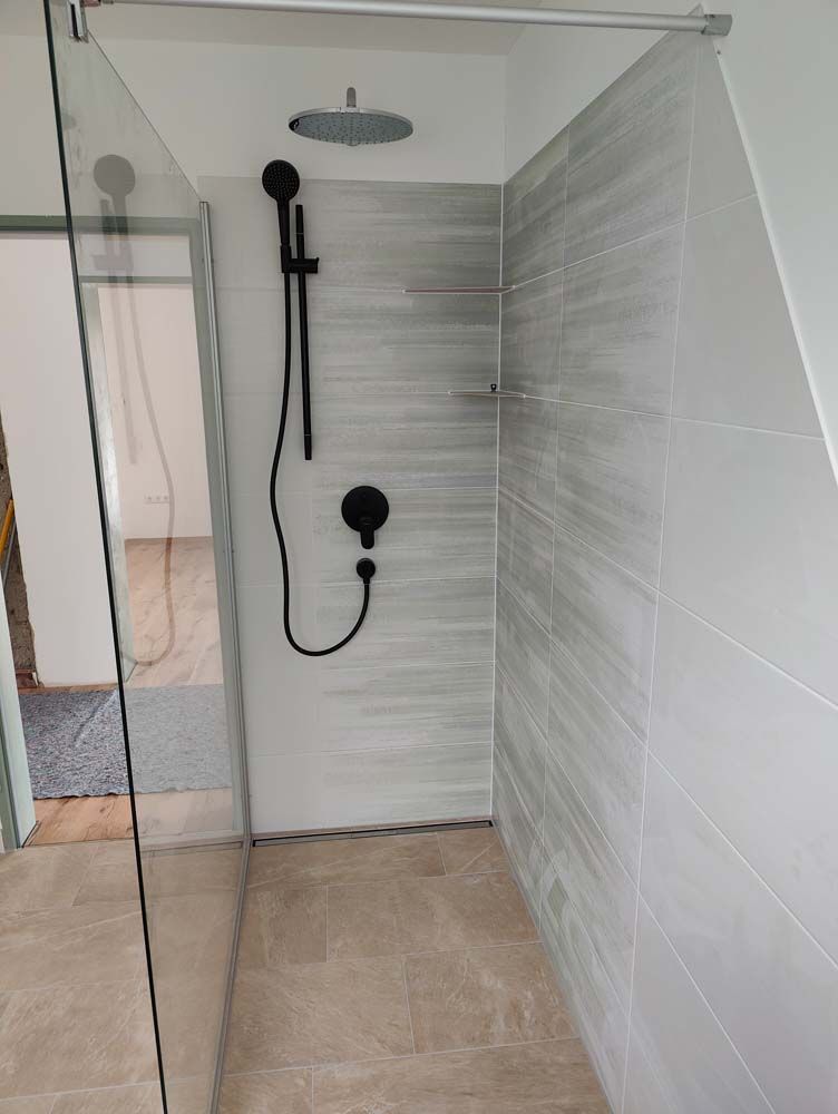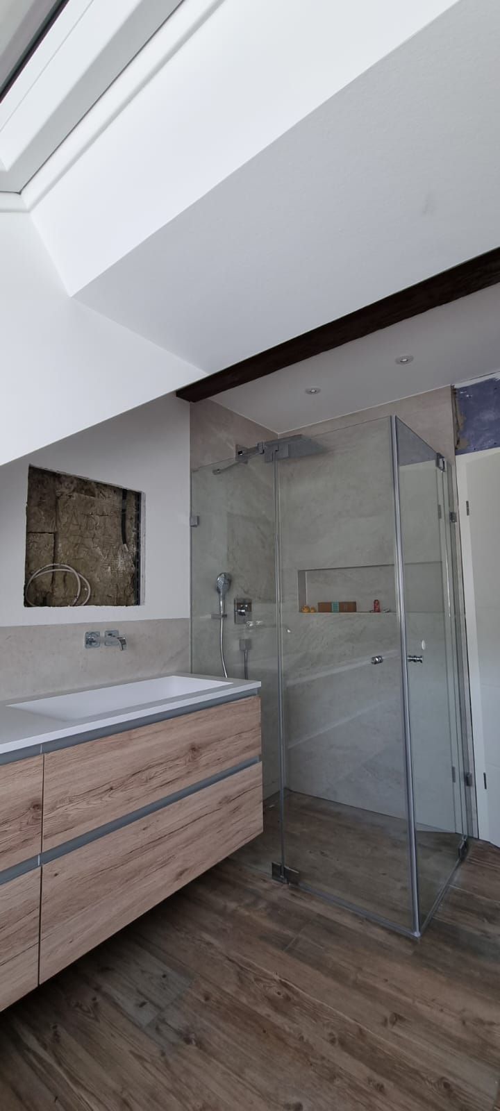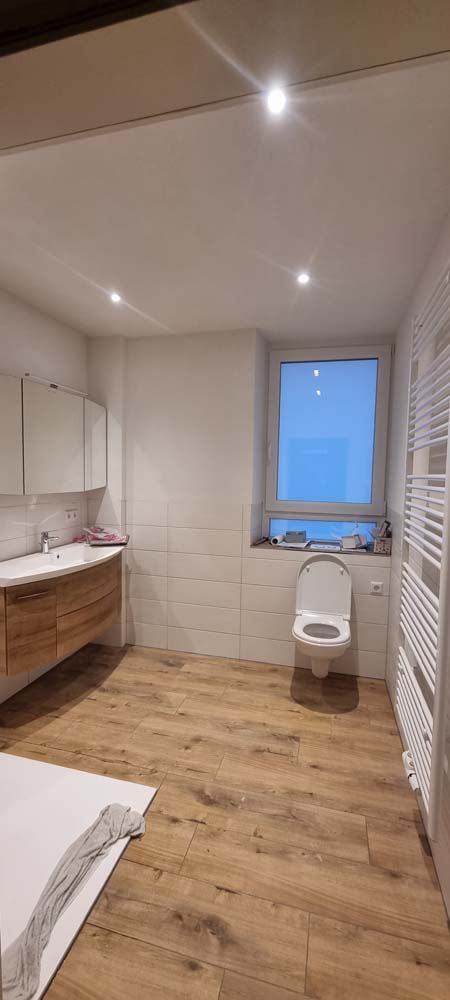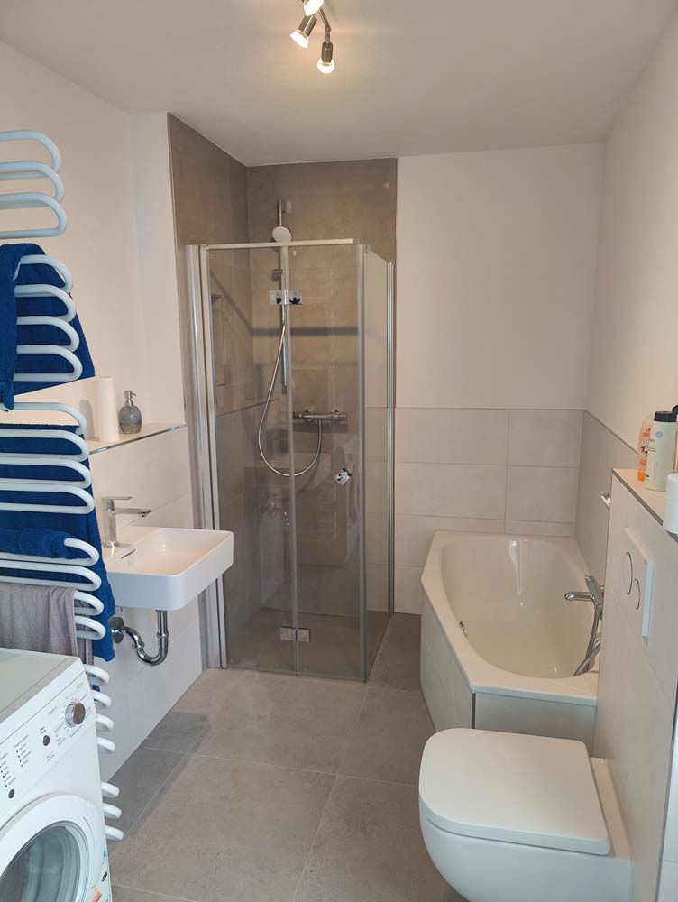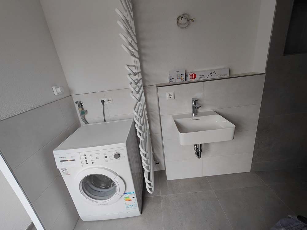 6,3 m², Bodenebene Dusche, Badewanne, WC, Waschtisch Handtuchheizkörper, Waschmaschine, Fertiger Zustand