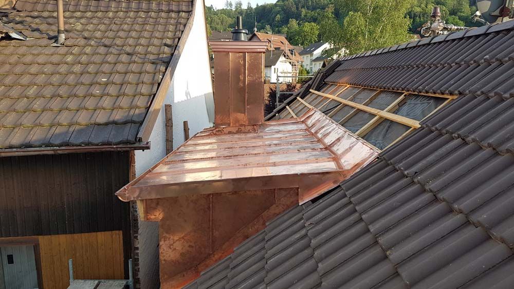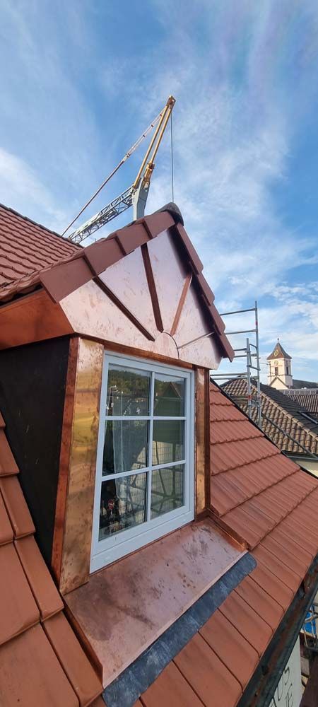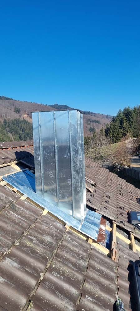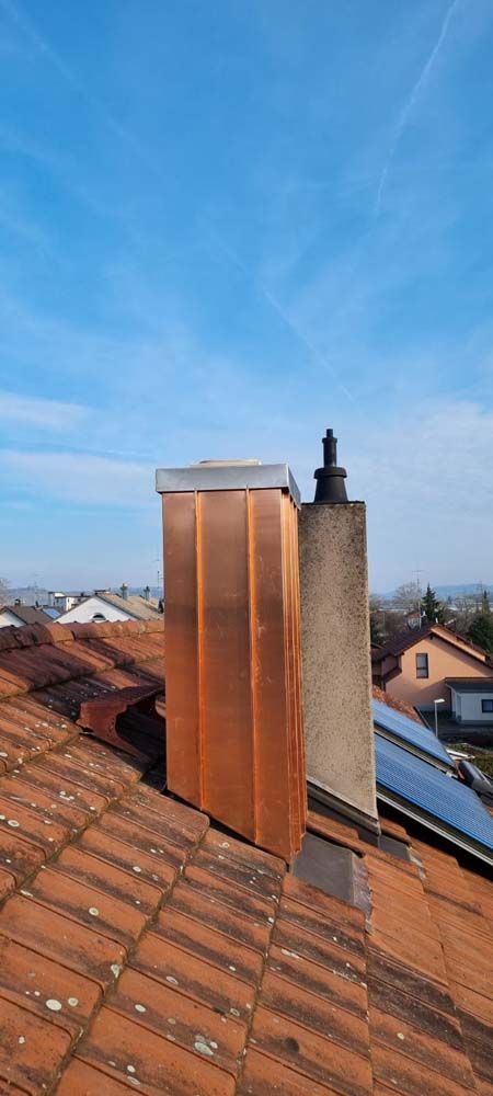 Baublechnerei, Dachrinnen, Blechverkleidungen maßgeschneidert, Gaubenverkleidungen, Blechdächer, Kaminvollverkleidungen, Kaminverwahrungen