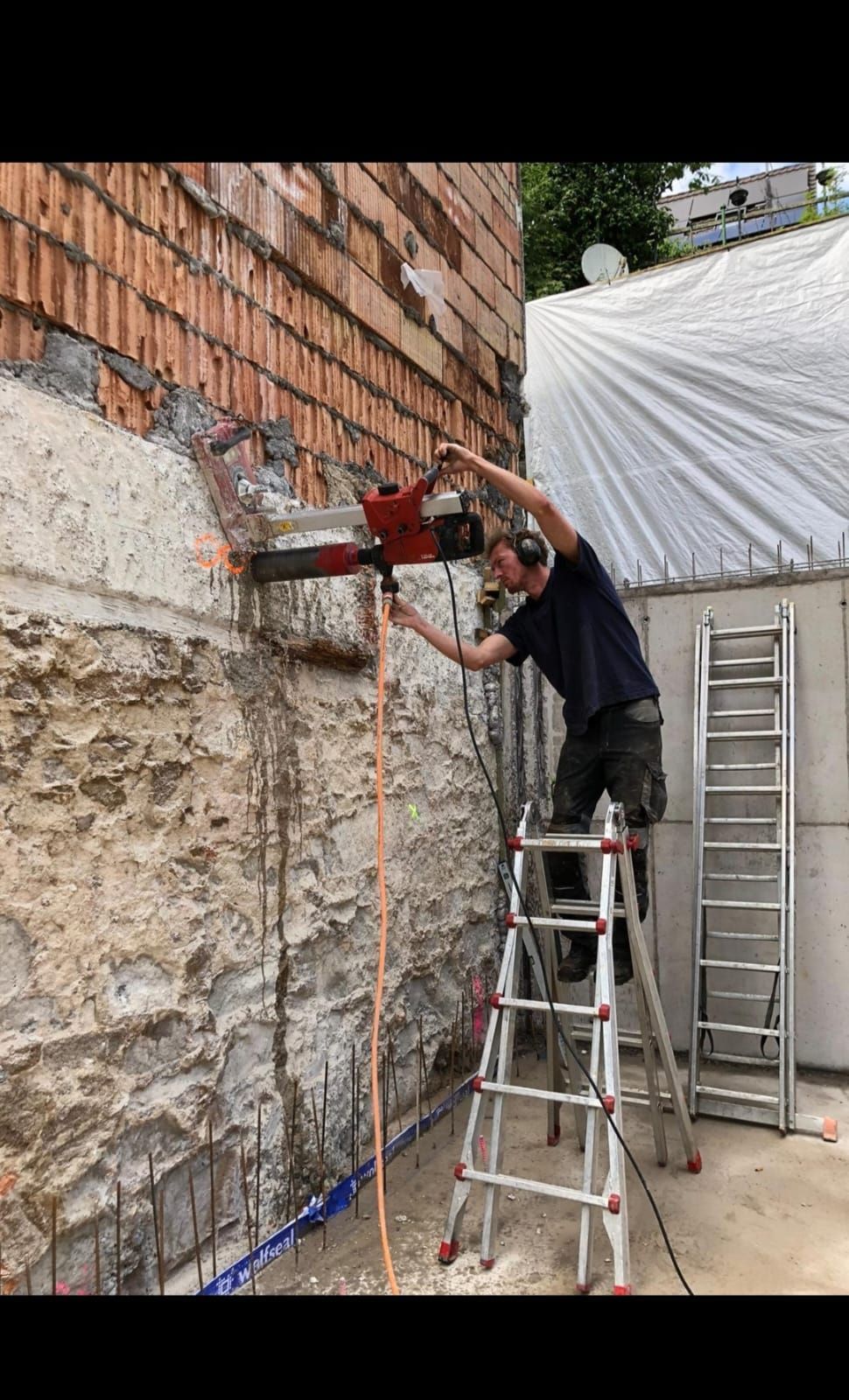 Kernbohrungen bis 220 mm, Beton, Mauerwerk jeglicher Arten, bei glatten Oberflächen mit Vakuumbefestigung ohne Beschädigung des Untergrundes